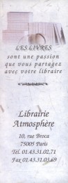 | Librairie Atmosphère à Paris de ? à ? | ||