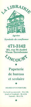 | Librairie Lincourt à Vieux-Terrebonne de 1965 à 2012 | ||