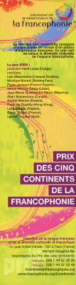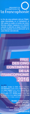 Le Musée du Marque-PageprésentePrix des cinq continents de la Francophonie ( Prix décerné depuis 2001 ) FRANCE